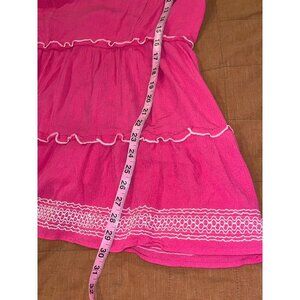 Lightweight, breathable, and stylish sleeveless top featuring a vibrant pink hue, intricate embroidery, and tiered design, ideal for casual outings or summer wear.