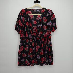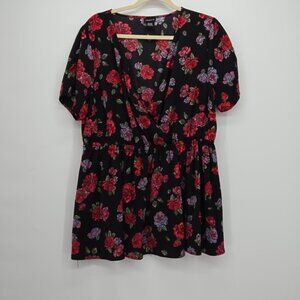 Torrid Babydoll Faux Wrap Floral V Neckline Pullover Plus Size Curvy Size 1X