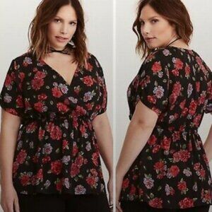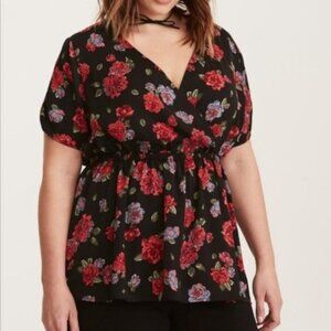 Torrid Babydoll Faux Wrap Floral V Neckline Pullover Plus Size Curvy
