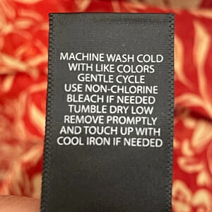 Chiffon woven fabric (semi-sheer, lightweight fabric that drapes beautifully and has red sparkly lines threaded throughout)