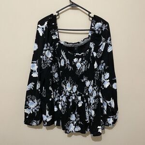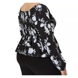 This beautiful black babydoll blouse from Torrid is perfect for any occasion. The floral pattern and square neckline add a touch of elegance, while the long puff sleeves and smocked bodice provide a comfortable and flattering fit. The pullover closure and machine washable material make it easy to wear and care for.