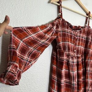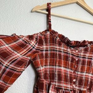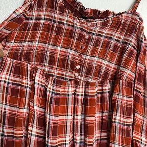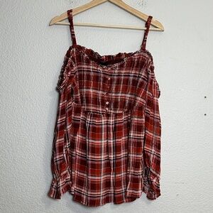 Torrid Babydoll Smocked Cold Shoulder Top 2X Womens Plaid Crinkle Gauze Blouse