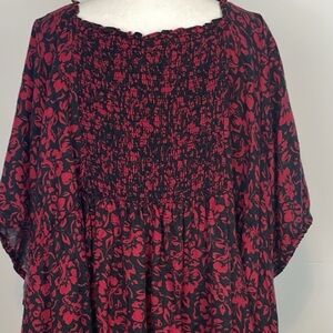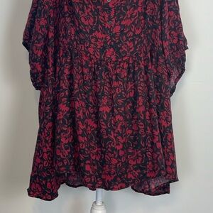 Torrid Babydoll Softest Flannel Puff Short Sleeve Top. Plus Size 6X. NWT. Red & Black floral print babydoll top. Softest Flannel woven fabric: The drapey, well-loved feel of vintage flannel with a brushed, cozy touch. Smocked top of the back. Pullover. Cut date 7/23. Armpit to pit measures 26 inches. Top of shoulder down 34 inches. Comes from a smoke free home.