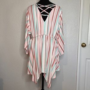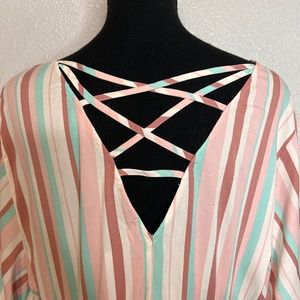 Strappy back detail, Tie Waist, Stripe Print, Sharkbite Hem.