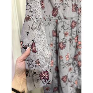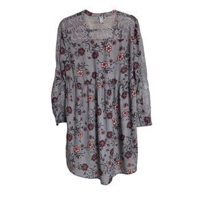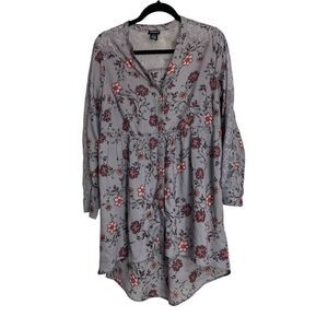 Torrid Babydoll Tunic Womens Size 00/M Gray Floral Button Front Lace Trim Hi-low
