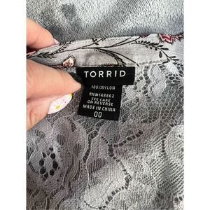 Torrid Babydoll Tunic Women's Size 00 Gray Floral Button Front Lace Trim Hi-low