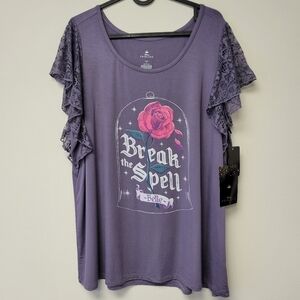 Torrid Beauty and the Beast Break Spell Belle Flutter Sleeve Top Purple 1X