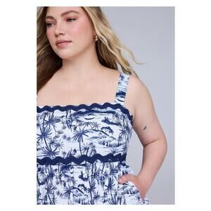 Torrid Belle Isle Blue Jungle Toile Babydoll Poplin Maxi Dress Sz.4 NWT