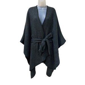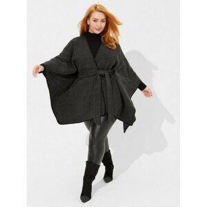 Torrid Belted Ryan’s Charcoal Gray Acrylic Open Front Belted Poncho Wrap Cape Ca