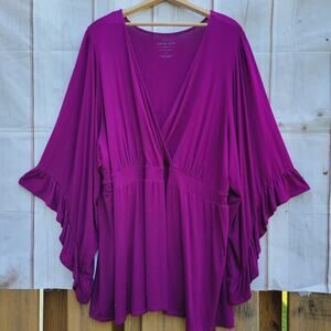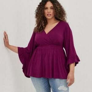 Torrid Berry Purple Super Soft Ruffle Peplum 3/4 Sleeve Top Size 5X