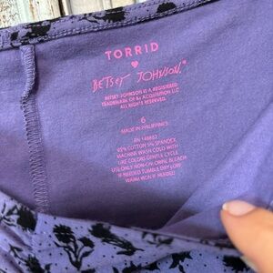 Torrid Betsey Johnson Mini Foxy Ruched Black Floral Purple Cotton Dress NWOT 6X