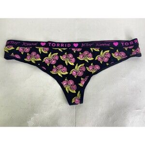 Torrid Betsey Johnson Thong Underwear Cheeky Cherry Black Womens Plus Size 3 3X