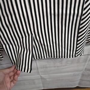 Torrid black and white striped bodycon mini dress, very stretchy. Plus size 26. Spaghetti straps with a zipper in the back and a small slit.