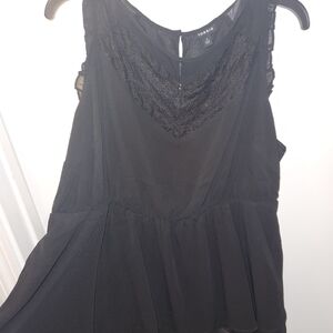 This stylish black blouse from Torrid features an asymmetrical design with elegant embellishments. The soft, flowing fabric drapes beautifully, creating a sophisticated look. Perfect for adding a touch of flair to any outfit.
