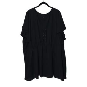 Torrid Black Babydoll Georgette Lace-Up Blouse Lace Front Tie Woman's Size 5X