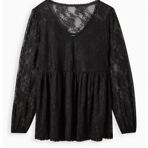 Torrid Black Babydoll Sexy Lace V-Neck Plus Size Top NWT