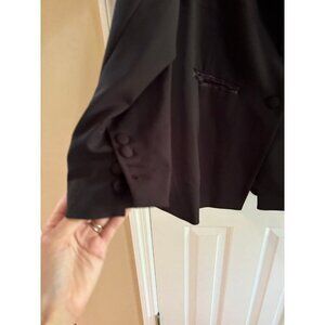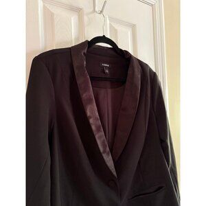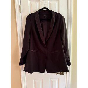 Torrid brand black blazer, size 2 (equivalent to a 2X). Like new condition. Phone is making this look discolored but this is a true black color with no stains. Has shoulder pads (can be removed).