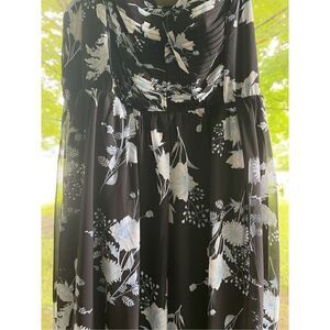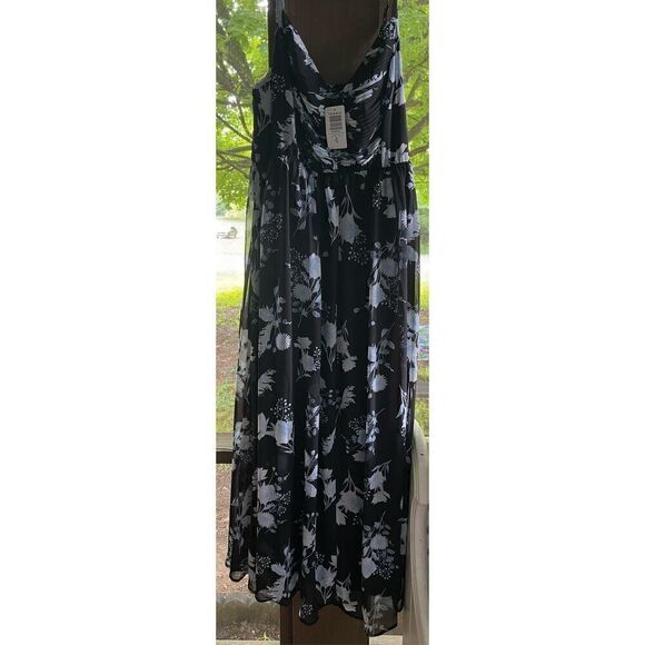 Torrid Black & Blue Floral Maxi Chiffon Pleated Dress Sz 00 M/L 10