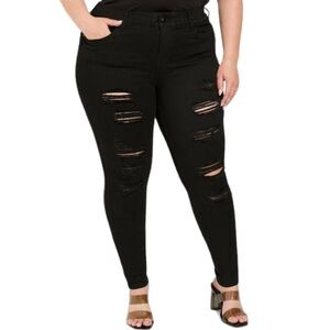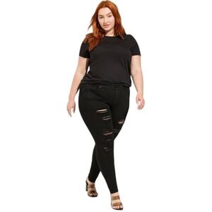Torrid black bombshell skinny ripped jeans. 5 pocket detail. Size 18T. 18 3/4” waist across top laid flat. 11 1/2” rise. 29” measured inseam. Very good used condition