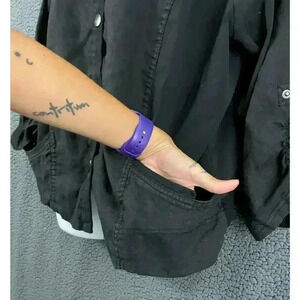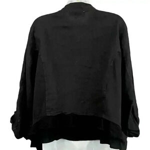 Torrid Black Button Front Blouse Sz 3 100% Linen Loose Pockets Plus Women's
