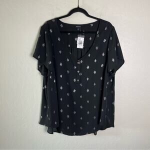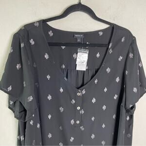 Torrid Black Cactus Georgette Hi-Low Button Detail Blouse 2X NWT 15241316