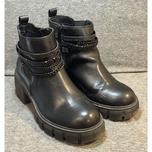 Torrid Black Chain Ankle Bootie Black Lug Moto Platform - Women's Size 9WW