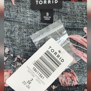 Brand new with the tags. Torrid Black Floral Print Flowy Blouse. V -Neck with ruffles going over the shoulder. Perfect date night blouse!!!