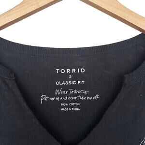 Torrid Black Classic Fit Skeleton Motorcycle Embroidered Split Neck Short Sleeve T Shirt Sz 2X