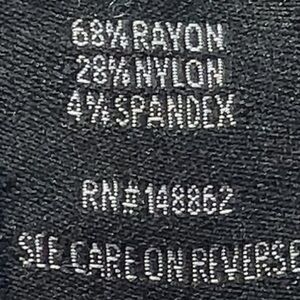 68% rayon, 28% nylon, 4% spandex.