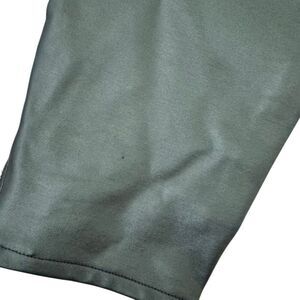 Black faux leather pants. Button and zip closures. Functional front and back pockets. Faux zipper pockets. Ankle zips. Stretchy. On the legs, near the ankles, there are several little picks, as shown. They really aren’t noticeable when wearing or unless you’re looking for it.