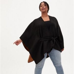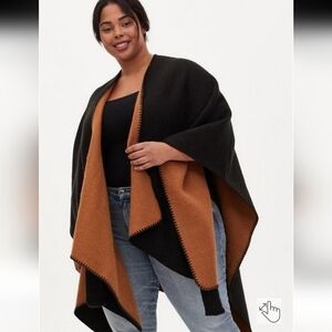 Torrid Black & Cognac Reversible Belted Ruana