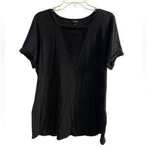 Excellent condition black Torrid T-shirt with a strappy crewneck.