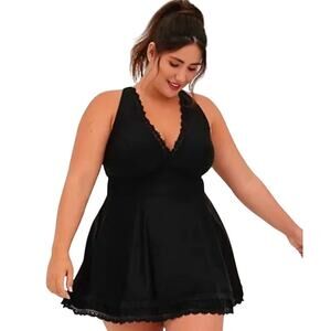 Torrid Black Crochet Lace Trim Swim Dress Bathing Suit Womens Plus Size 1X