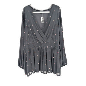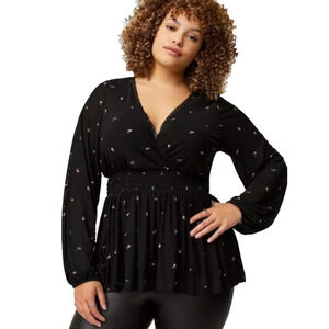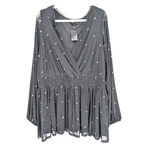 Torrid Black Dainty Floral Mesh Surplice Babydoll Top Coquette Whimsigoth 3X