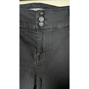 Elevate your style with these Torrid black denim jeans jeggings. The embroidered rose flower design adds a touch of femininity to your outfit. The power stretch denim provides a comfortable fit while contouring your curves. These jeggings feature a high rise, button and zip closure, and a 5-pocket design. Perfect for any season, these jeans are machine washable and made of a blend of cotton, rayon, polyester, and spadnex. The dark wash fabric and floral pattern create a chic and edgy look.