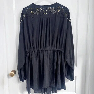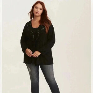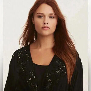 Torrid Black Embroidered Challis Tie Front Kimono Style Top Like New