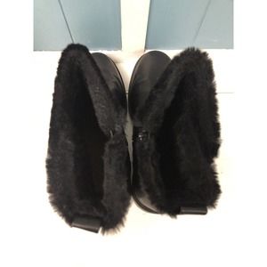 Torrid Black Faux Leather Fur Trim Lug Sole Moto Bootie (WW) 10.5 Wide Width