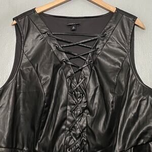 Torrid Black Faux Leather Lace Up Top Plus Size 3X Tank Peplum Club Moto Biker