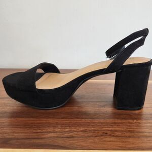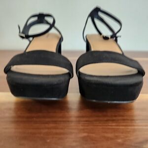 DETAILS: Torrid Black Vegan Faux Suede Leather Platform Chunky Heel Sandal Ankle Strap 10.5W