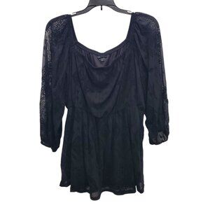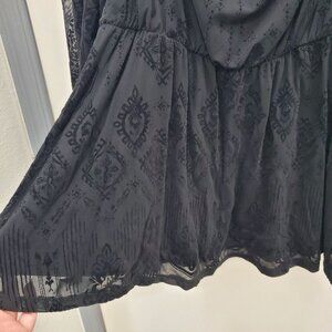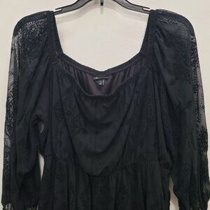 Torrid Black Flocked Mesh Square Neck Puff Sleeve Peasant Top Goth Boho Plus 1