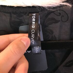 Torrid Black Flocked Mesh V-Neck Bodysuit Rose Design, Soft, Stretch, NW…