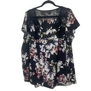 Torrid Black Floral Button Up Short Sleeve Blouse Size 1X