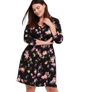 Torrid Black Floral Challis Button Down Trapeze Midi Dress
