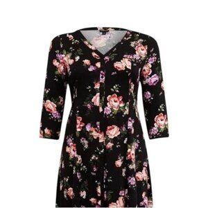 Torrid black floral challis button down trapeze midi dress. Several minor snags on the front of the dress. V-Neck. Good condition. NO TRADES.