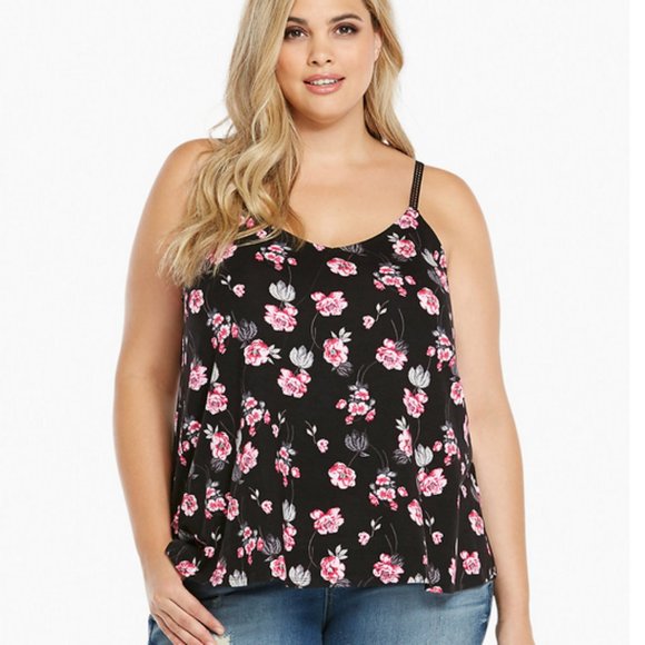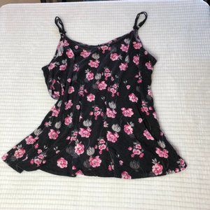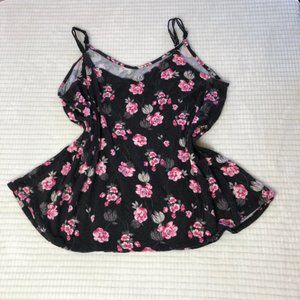 Torrid Black Floral Crochet Trim Tank Top Size 2