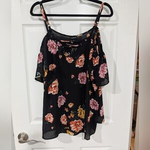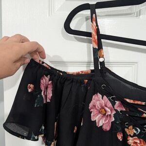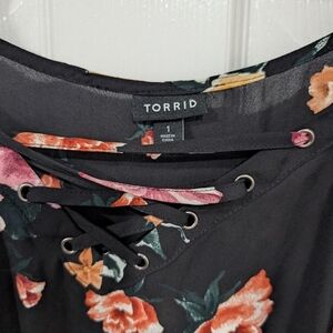 Torrid Black Floral Georgette Lace-Up Cold Shoulder in Size 1 (14/16)