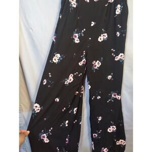 Torrid Black Floral Jumpsuit. Perfect cozy summer wear. Size 1X. 18" pit-to-pit, 16" across the waist, 33" inseam, and 56" total length.