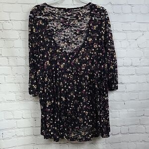 Torrid Black Floral Lace Semi-Sheer Peplum Babydoll Blouse Button Front Top 2/2X