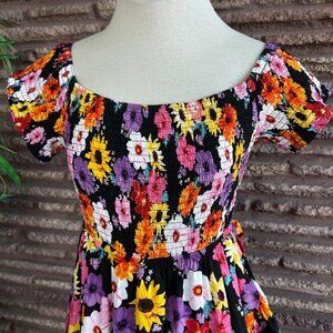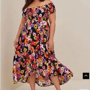 Torrid Black Floral Maxi Challis Off Shoulder Dress Size 0X