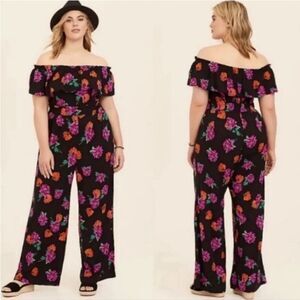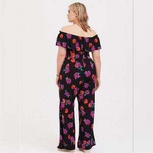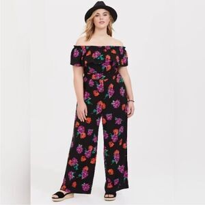 Torrid Black Floral Off Shoulder Design Contemporary Boho Feminine Jumpsuit